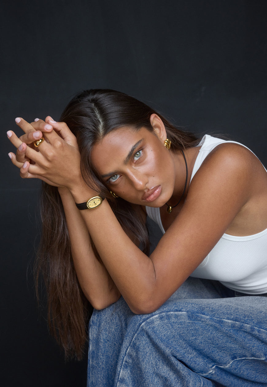 Rich, warm, and softly luminous – our signature gold finish. Designed to make a subtle statement, each piece is plated over high-quality stainless steel for enduring wear.