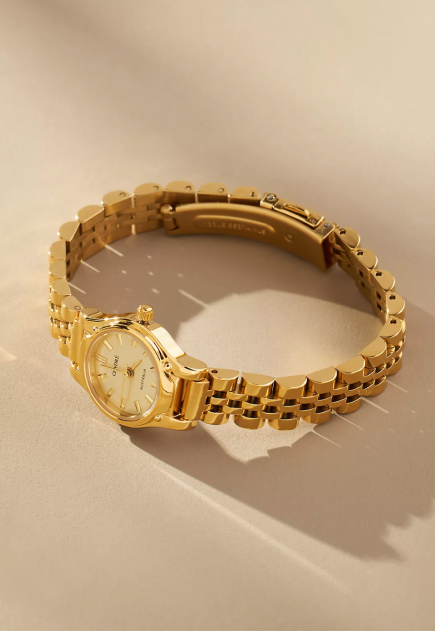 Super delicate and petite gold watch. Lovely design and really enjoy the flexibility of it coming with its own adjustment kit.