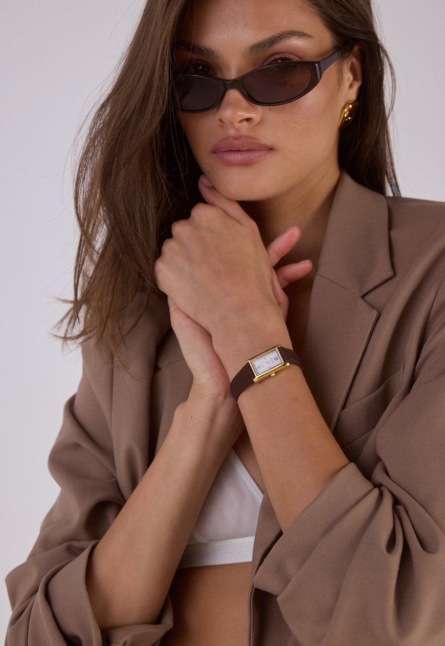 Elevate your timepiece collection with The Kelly, a watch designed to embody timeless elegance. Featuring our signature rectangular silhouette, a refined Roman numeral dial and a hidden crown etched with our signature monogram, this design is the epitome of sophistication.