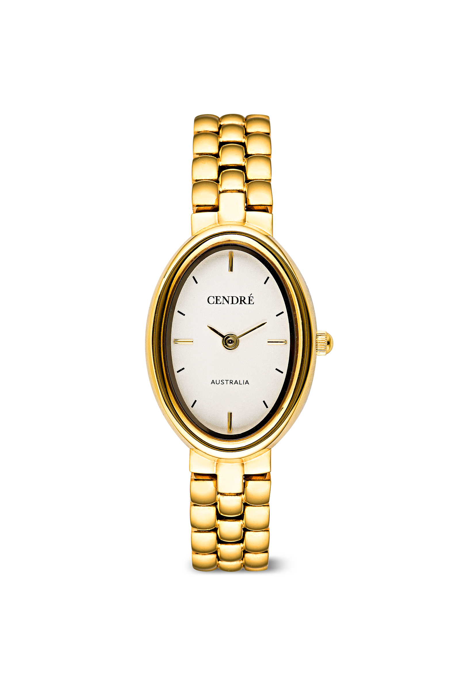 Indulge in our number one best selling Phoebe watch - a staple poised with a feminine silhouette, modern charm & practicality for the everyday. Ready to fit graciously into your adornment rotation, the Phoebe - Gold has been built on 18k Premium double gold plated stainless steel and features a white, oval faced imprinted with our signature brand-mark and adjustable strap to personalise your fit.