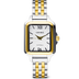 Crafted from 18k premium gold plated stainless steel and polished silver stainless steel, featuring a rectangular face and Roman Numeral dial.