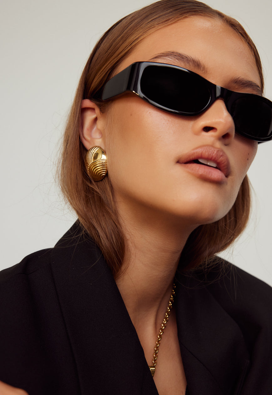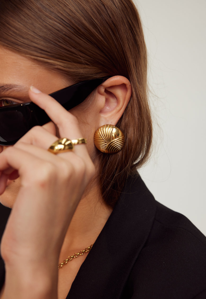 Harmonising geometry and abstraction, our Bambi Earrings seamlessly transcend trends. Crafted from 18k gold-plated stainless steel, they boast delicate linework engraving on the surface and are elegantly secured by our custom earring backings for instant lift.