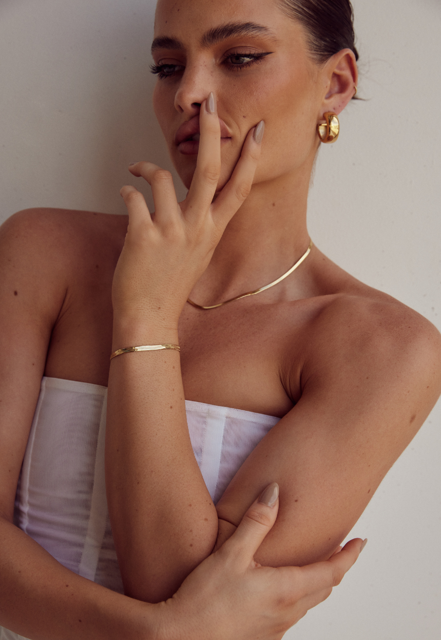 Beau’ simply means ‘beautiful’ and we can’t think of a more fitting name for our Beau Bracelet. This style is an understated 18k gold plated snake chain that's fastened by a parrot clasp and adorned with a metal CENDRÉ tag at the end of the adjustable chain link. This is the style to wear when you want to add a golden touch to a minimal outfit.