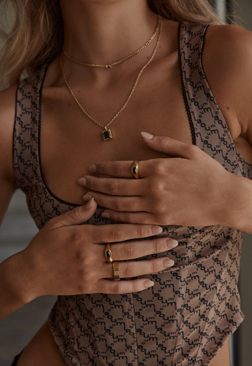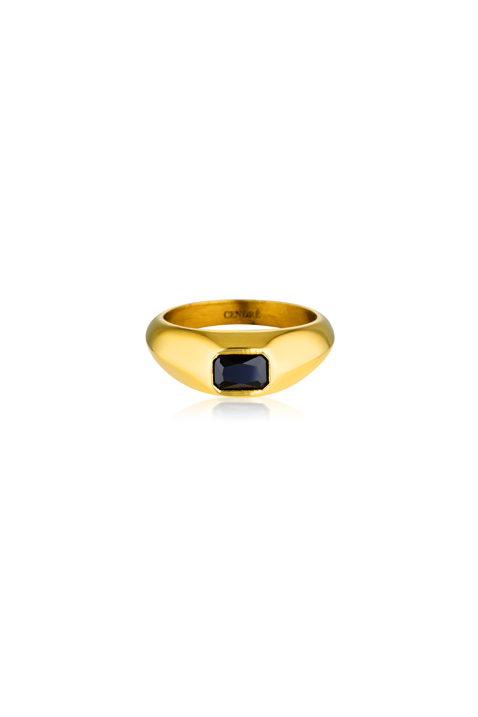The Bowie Onyx Ring is an eye-catching final flourish to even the most minimal of outfits. This style has a high shine polished surface, branding on the interior, and has a hexagonal black cubic stone situated at the centre. It's crafted from durable 18k gold plated stainless steel so it can accompany you on all your adventures.