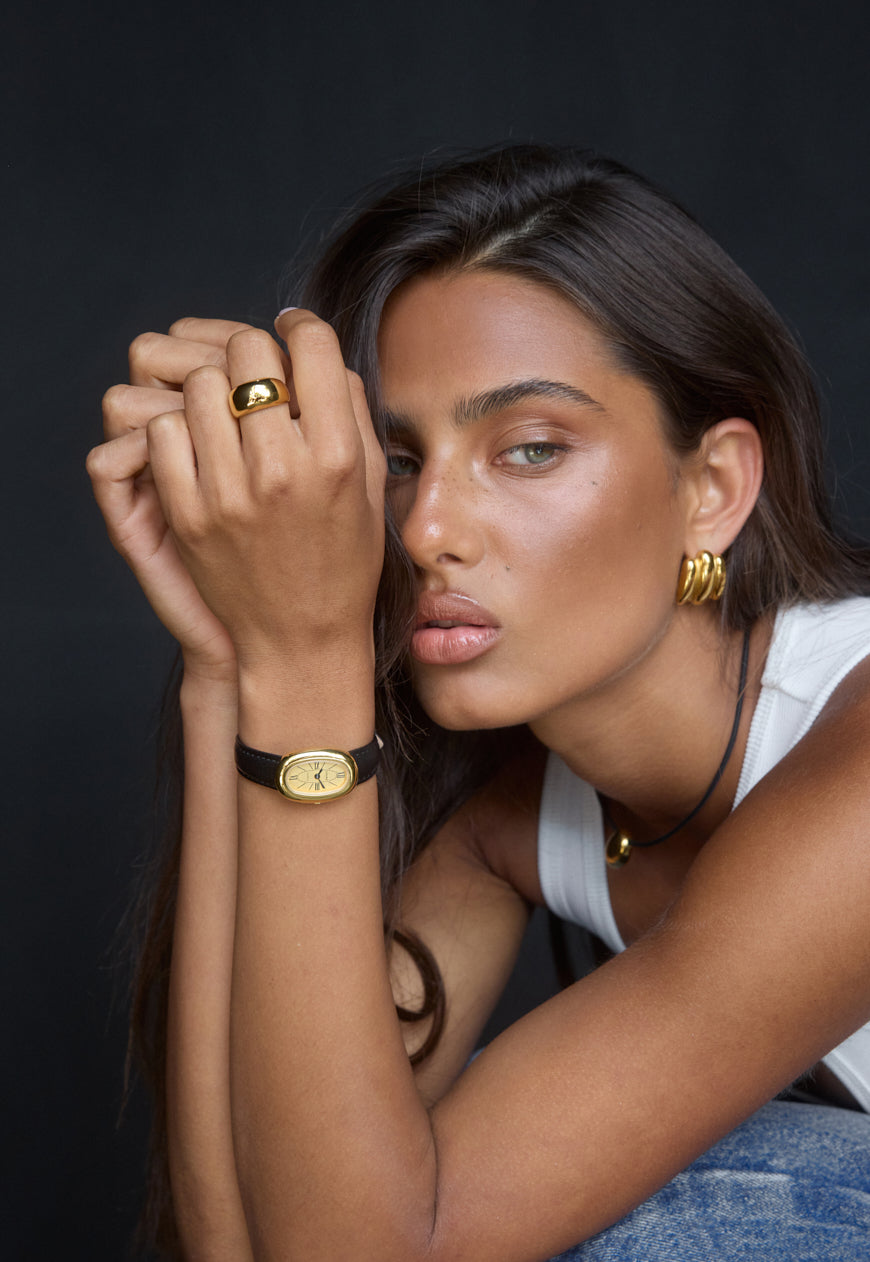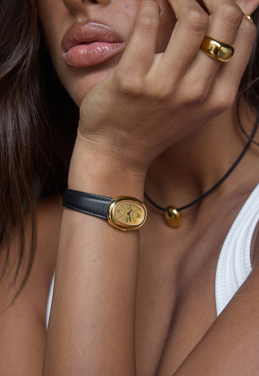 Presenting: Bridgette. The latest addition to our bespoke watch series. With it’s bold oval silhouette, Roman Numeral dial, hidden crown etched with our signature monogram and genuine Italian leather band - The Bridgette is a proud statement of sophistication and versatility, seamlessly blending classic charm with modern refinement.