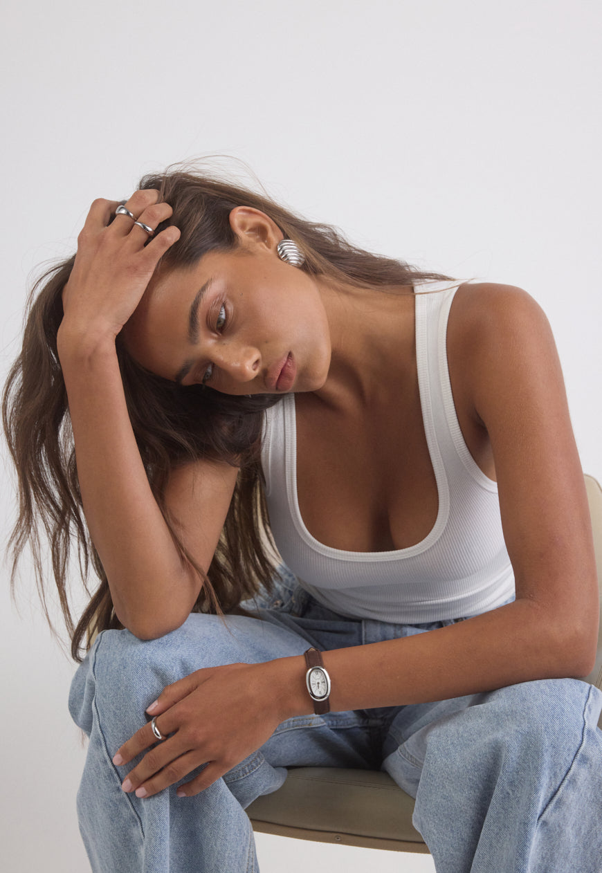 Presenting: Bridgette. The latest addition to our bespoke watch series. With it’s bold oval silhouette, Roman Numeral dial, hidden crown etched with our signature monogram and genuine Italian leather band - The Bridgette is a proud statement of sophistication and versatility, seamlessly blending classic charm with modern refinement.