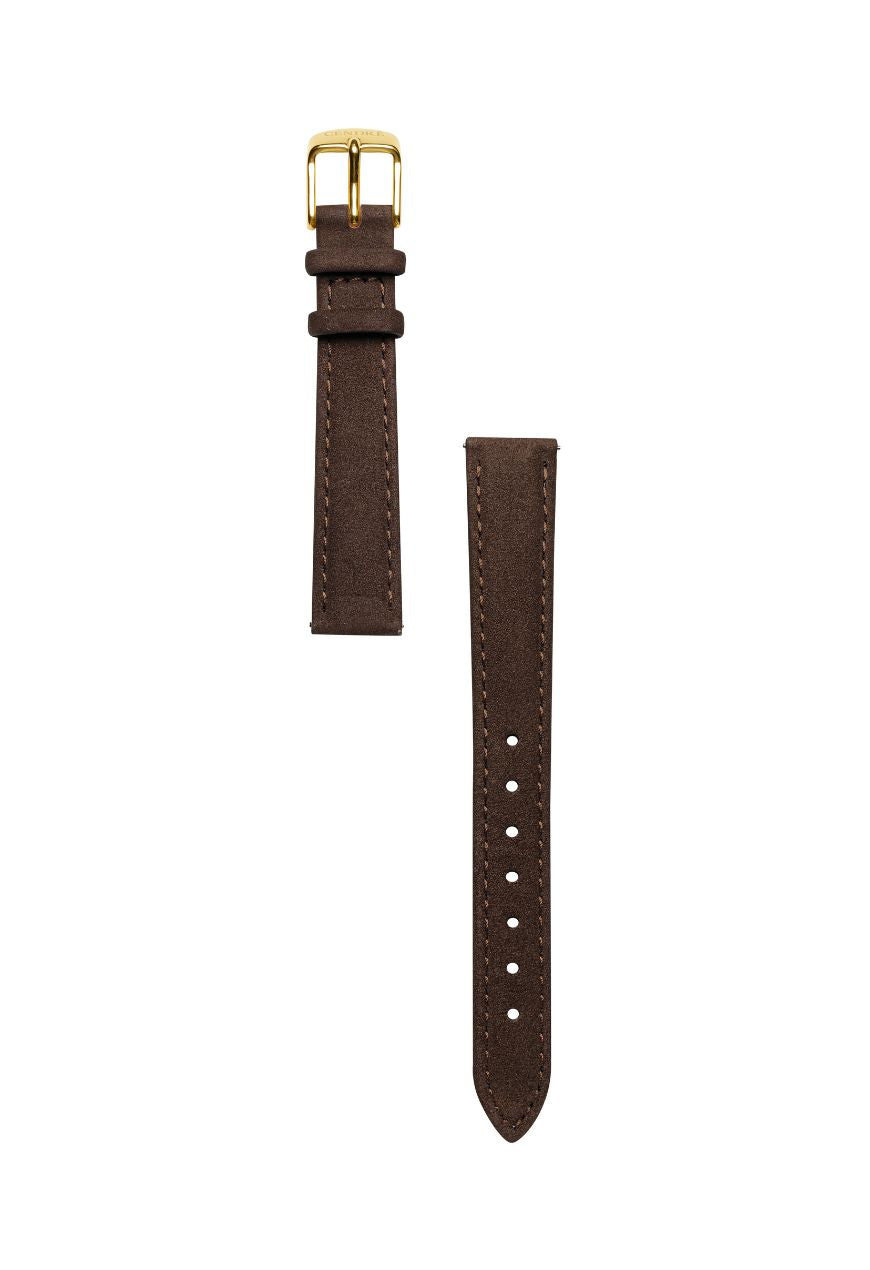 - Genuine Italian Chocolate Suede Leather Strap with 18K Gold Plated Buckle