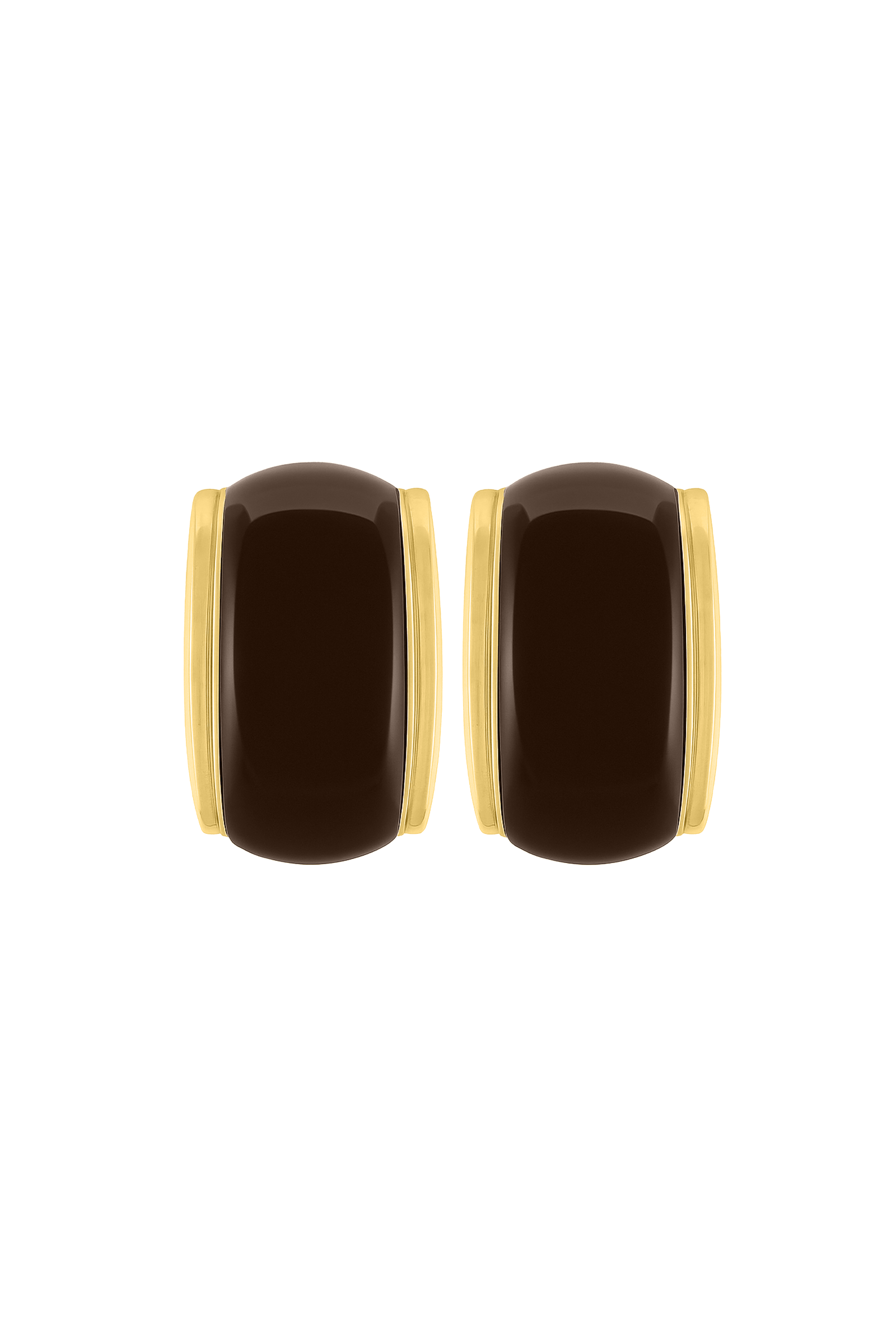 A vintage-inspired statement, the Bruni Earrings feature a glossy chocolate-toned centre framed in 18k Gold plating. Perfect for day-to-night styling.