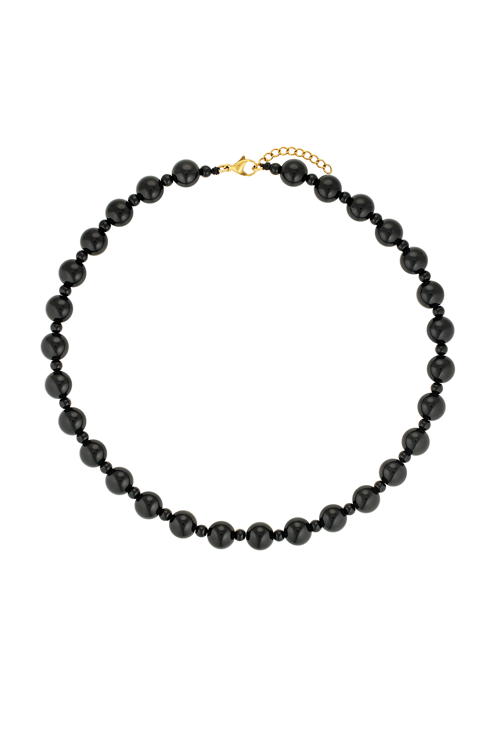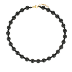 The Constance Necklace combines bold textures with understated refinement, drawing inspiration from Art Deco design.Crafted with round black agate beads, it drapes elegantly with a delicate gold chain, creating a striking yet versatile piece.Wear it on its own for a striking statement or pair it with the Constance Bracelet for a coordinated, cohesive look.