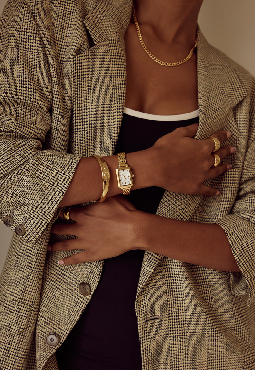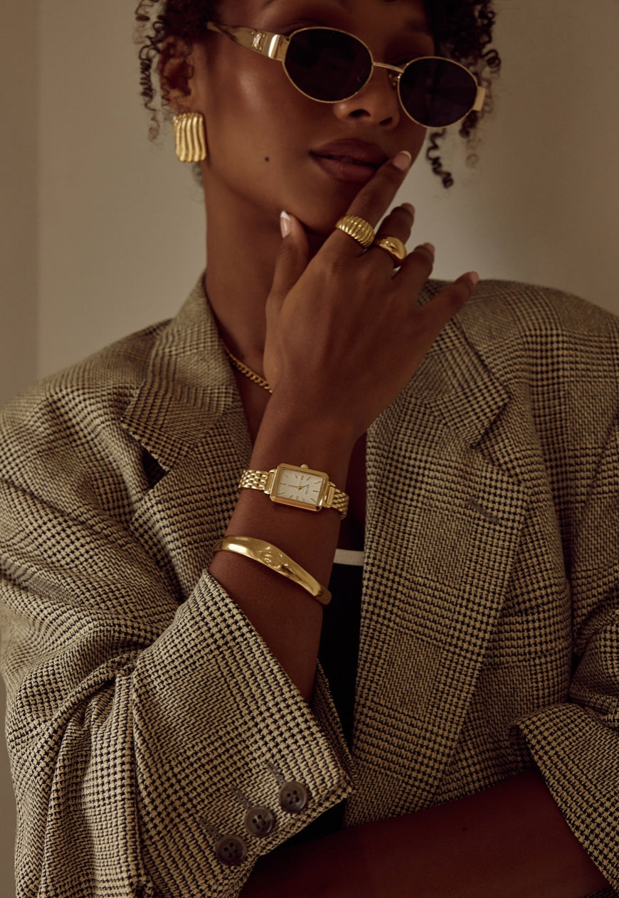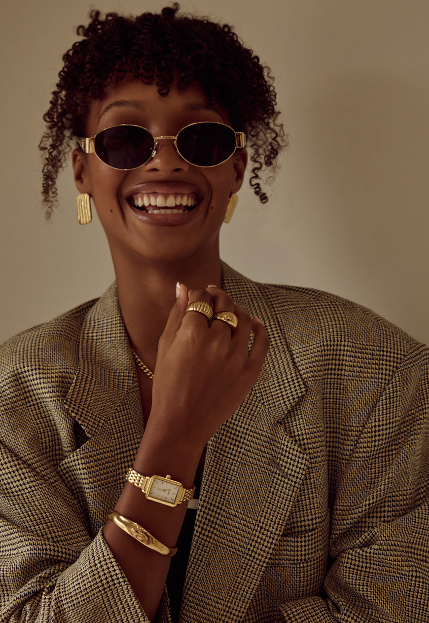 Rich, warm, and softly luminous – our signature gold finish. Designed to make a subtle statement, each piece is plated over high-quality stainless steel for enduring wear.