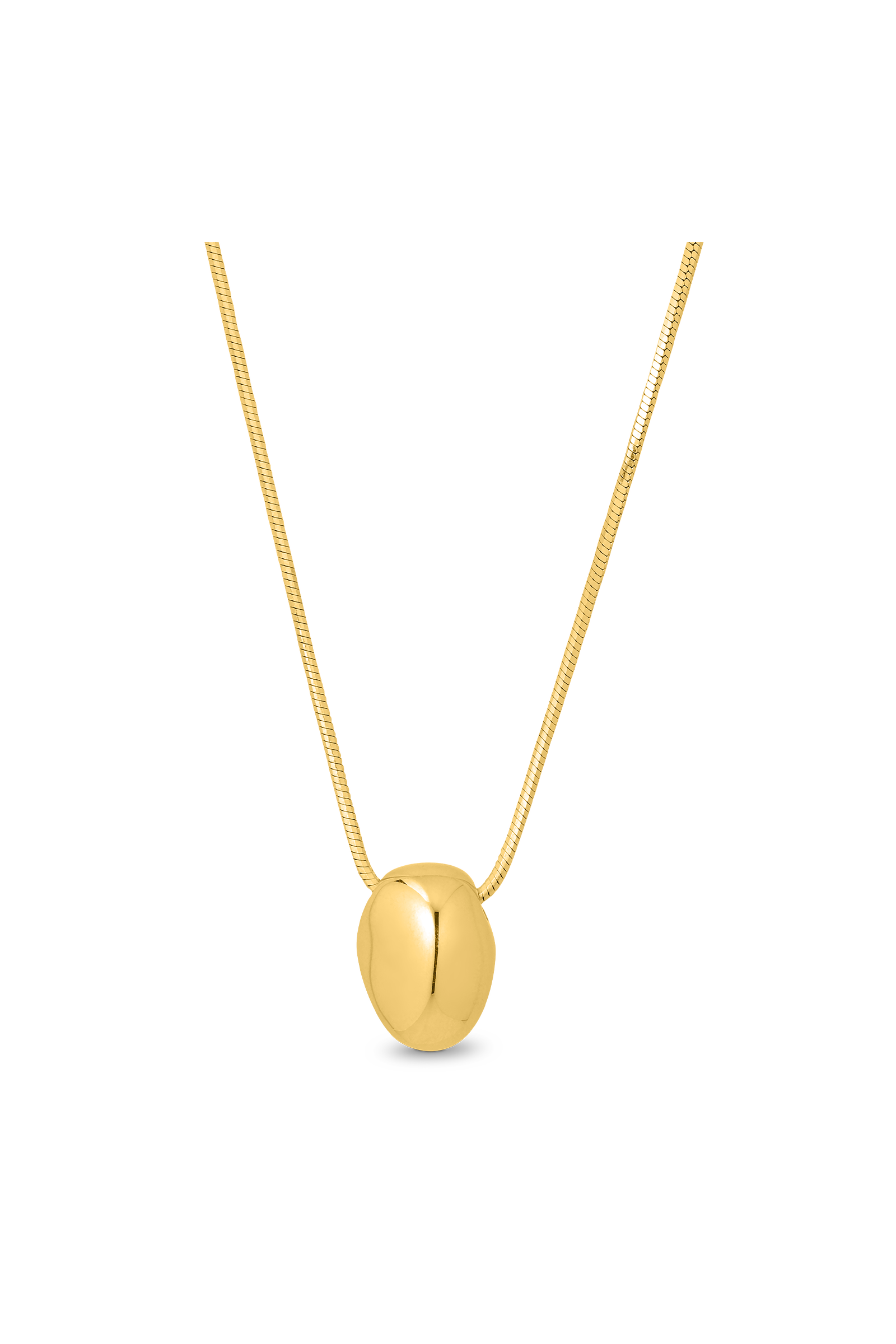 The Genevieve Necklace features a sculptural 18K Gold pendant on a fine chain. With its organic form and polished finish, it’s a timeless piece that elevates both everyday and evening looks.