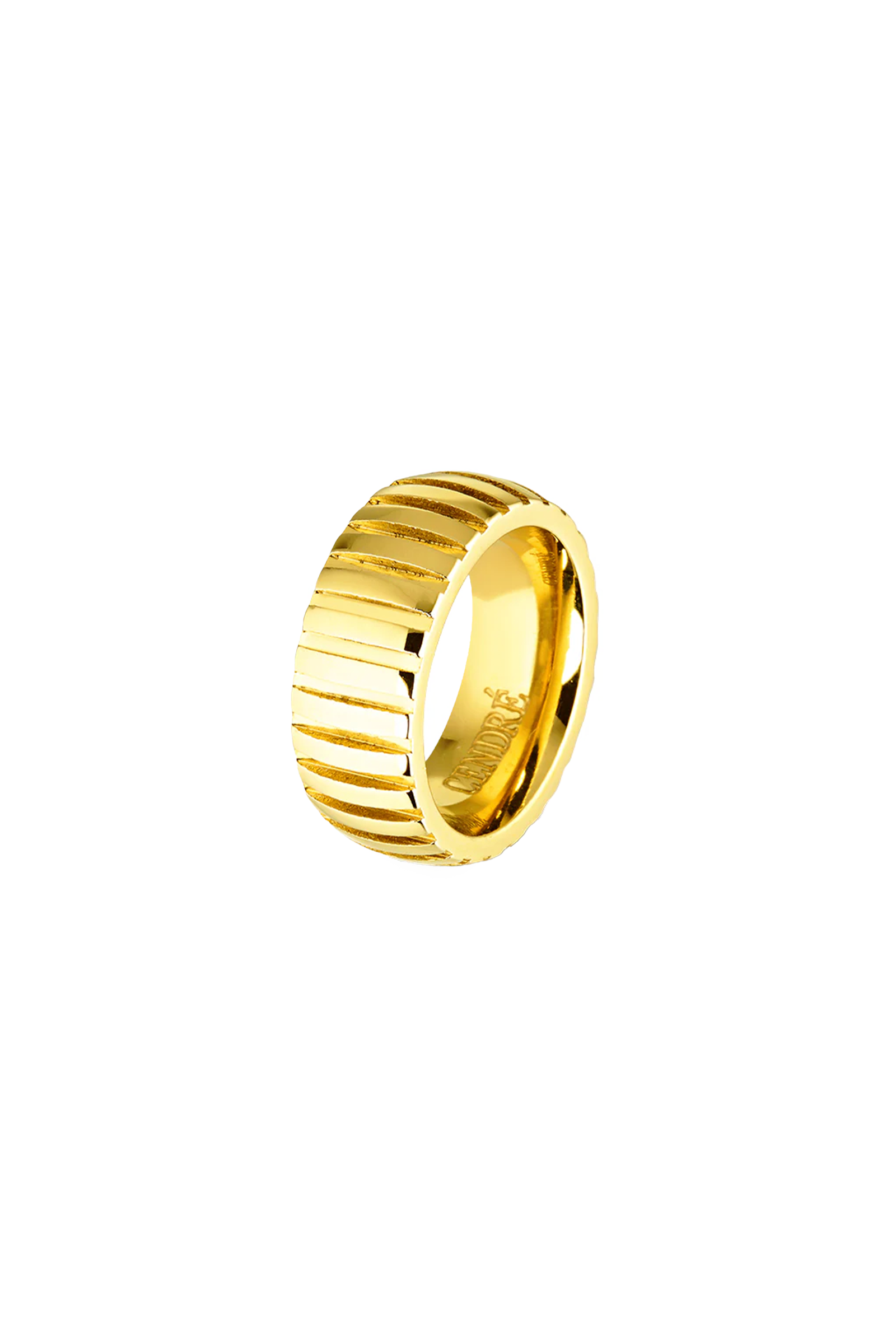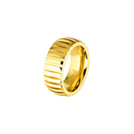 The Harper Ring in Gold is a premium ribbed cigar ring expertly crafted with 18K gold plating on stainless steel. Enjoy the benefits of durability and a luxurious design, perfect for adding a touch of sophistication to any outfit. Made to last with a professional finish, this ring is a must-have for any jewellery collection.