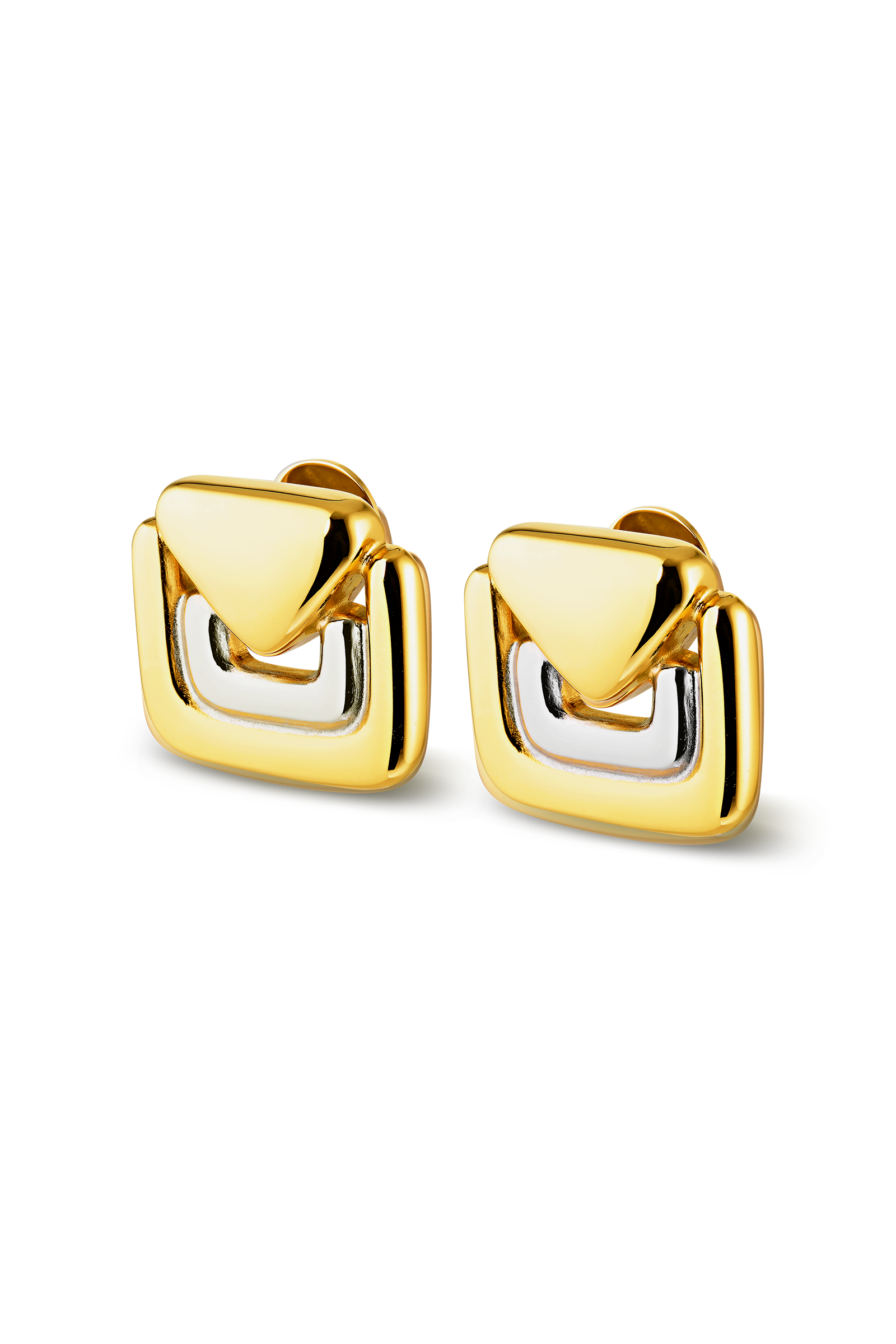 Introducing the Hosk Earrings. A modern silhouette redefined with geometric and artistic design.Allow your earring adornment to take centre stage with this curved square shape featuring a triangular dimensional effect and high shine finish.