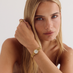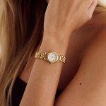 Crafted from 18k premium gold plated stainless steel, featuring a petite round white watch face and an elegant jubilee-style band, the Isobel is designed to elevate every look.