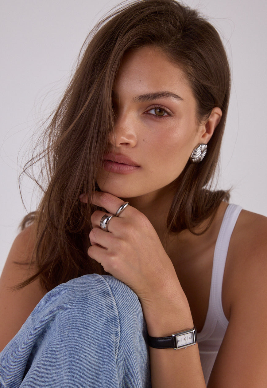Rich, warm, and softly luminous – our signature gold finish. Designed to make a subtle statement, each piece is plated over high-quality stainless steel for enduring wear.