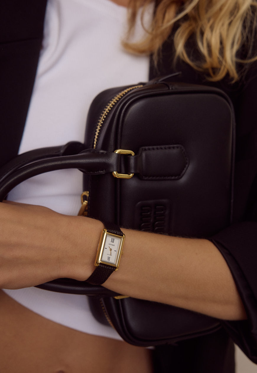 Elevate your timepiece collection with The Kelly, a watch designed to embody timeless elegance. Featuring our signature rectangular silhouette, a refined Roman numeral dial and a hidden crown etched with our signature monogram, this design is the epitome of sophistication.