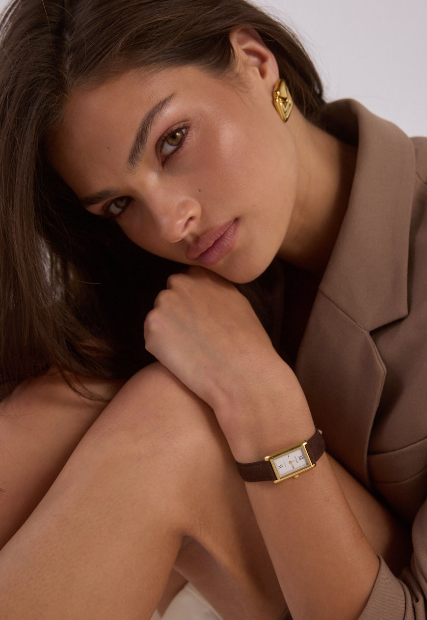 Elevate your timepiece collection with The Kelly, a watch designed to embody timeless elegance. Featuring our signature rectangular silhouette, a refined Roman numeral dial and a hidden crown etched with our signature monogram, this design is the epitome of sophistication.