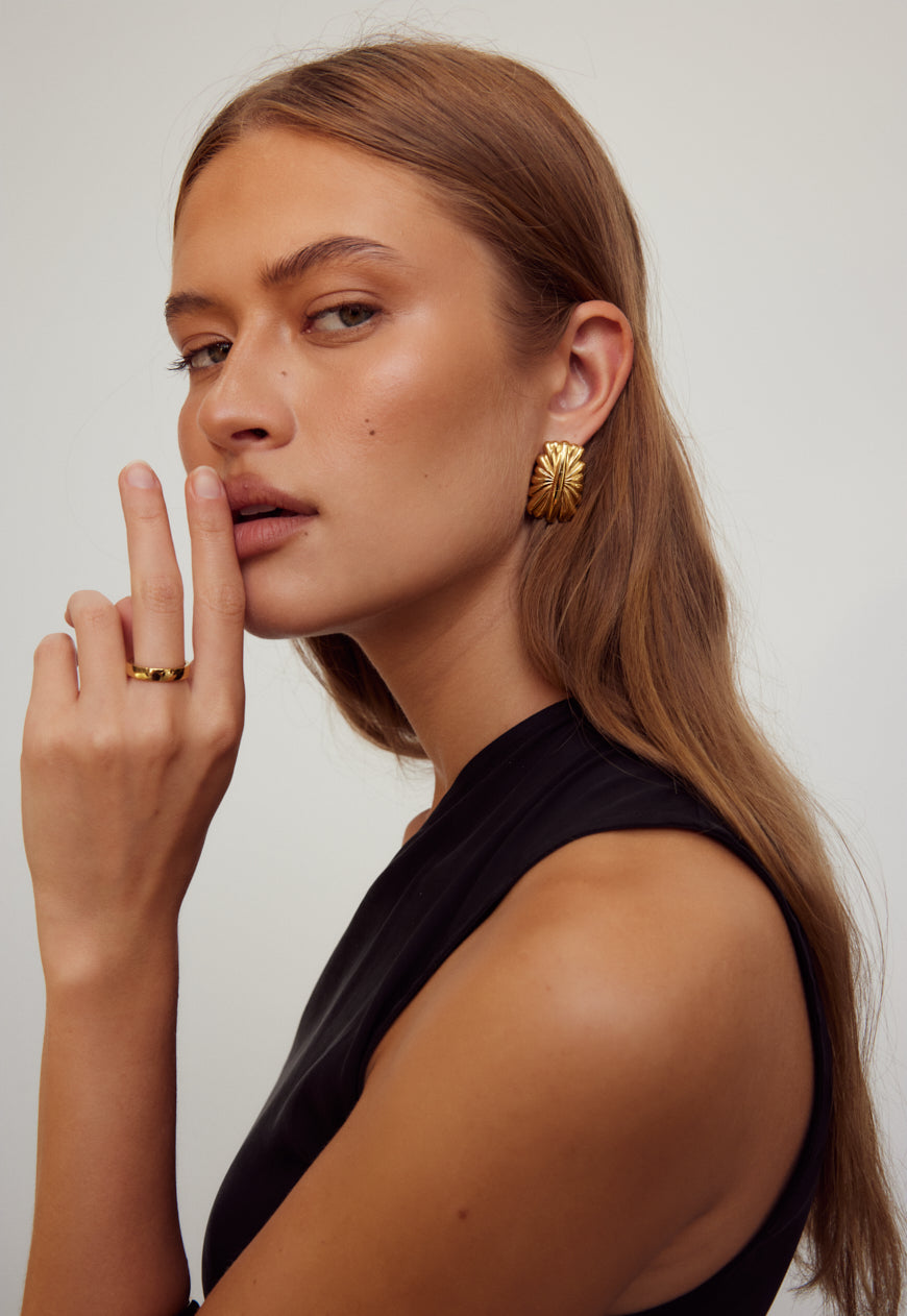 Rich, warm, and softly luminous – our signature gold finish. Designed to make a subtle statement, each piece is plated over high-quality stainless steel for enduring wear.
