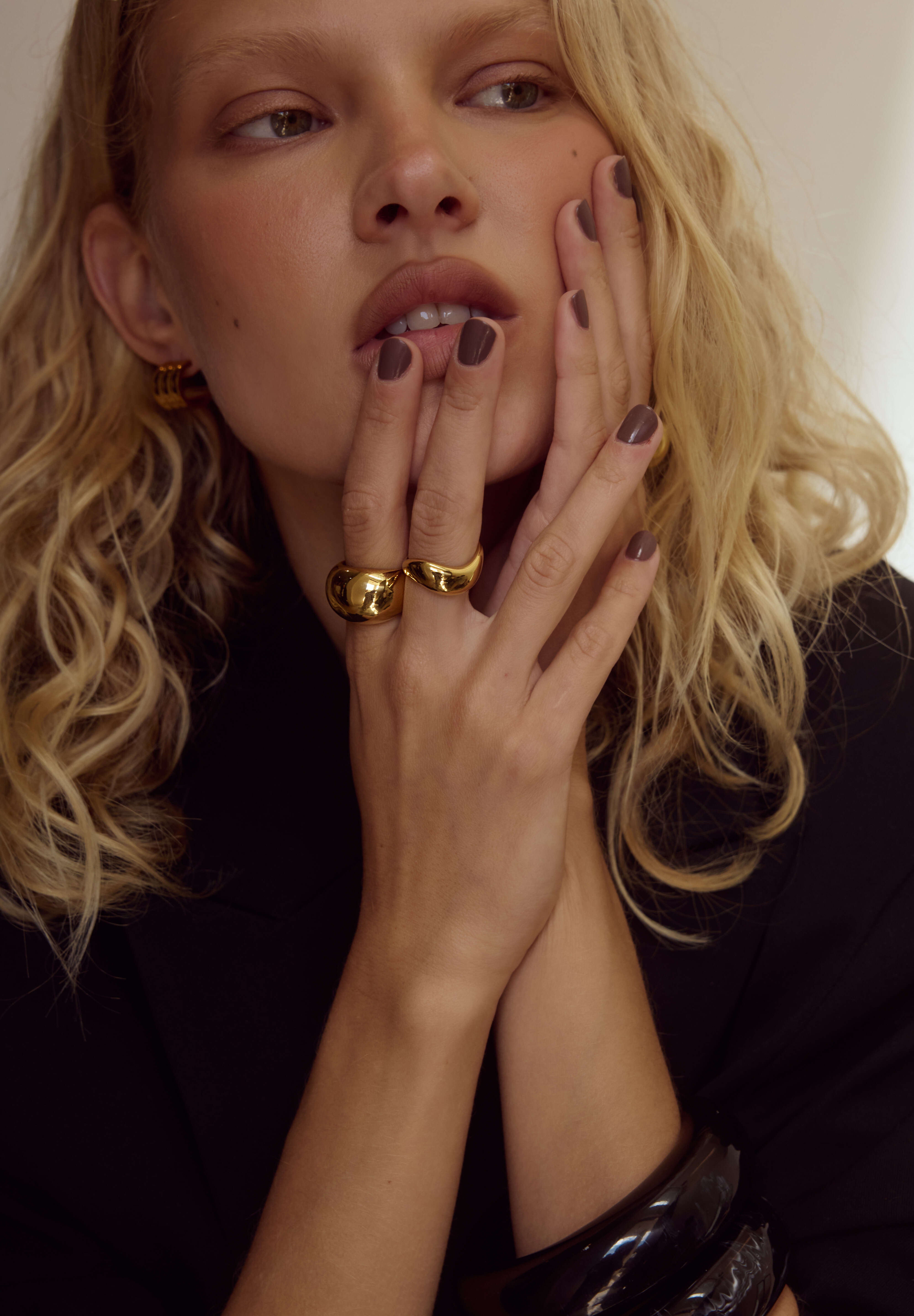 Minimal yet distinctive, Maeve is a sculptural, curvy ring with 18k Gold Plating. An everyday classic with a twist.