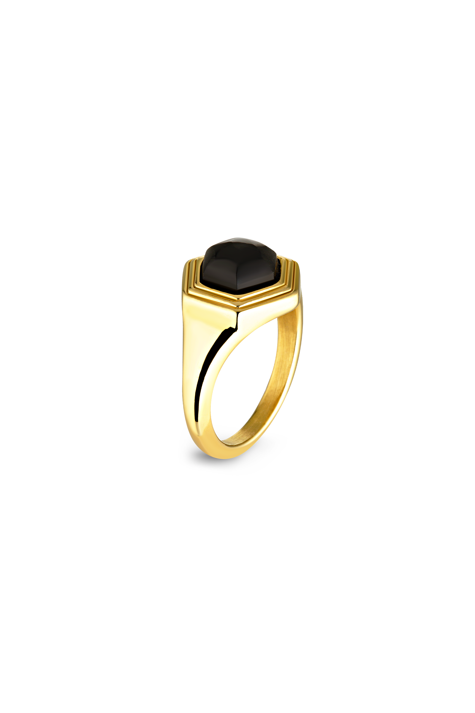 The Muse Ring is bringing forth an effortless nod to the quintessential seventies era with it’s vibrant showcase of mixed tones and high shine monochromatic detailing. With a square black cubic stone as it’s focus and presented on a geometrical towered silhouette, it marries perfectly with the Muse Earrings to provide a cohesive styling element.