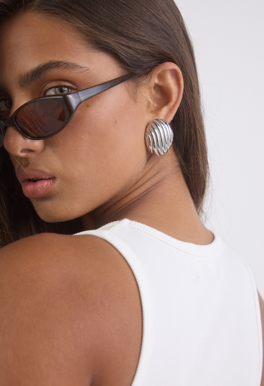 Promising to leave a lasting impression, the Odette Earrings are a playful style that celebrates intricate details. Crafted from Silver Stainless Steel, these earrings feature curved, wave-like engravings on the surface, providing a captivating visual appeal.