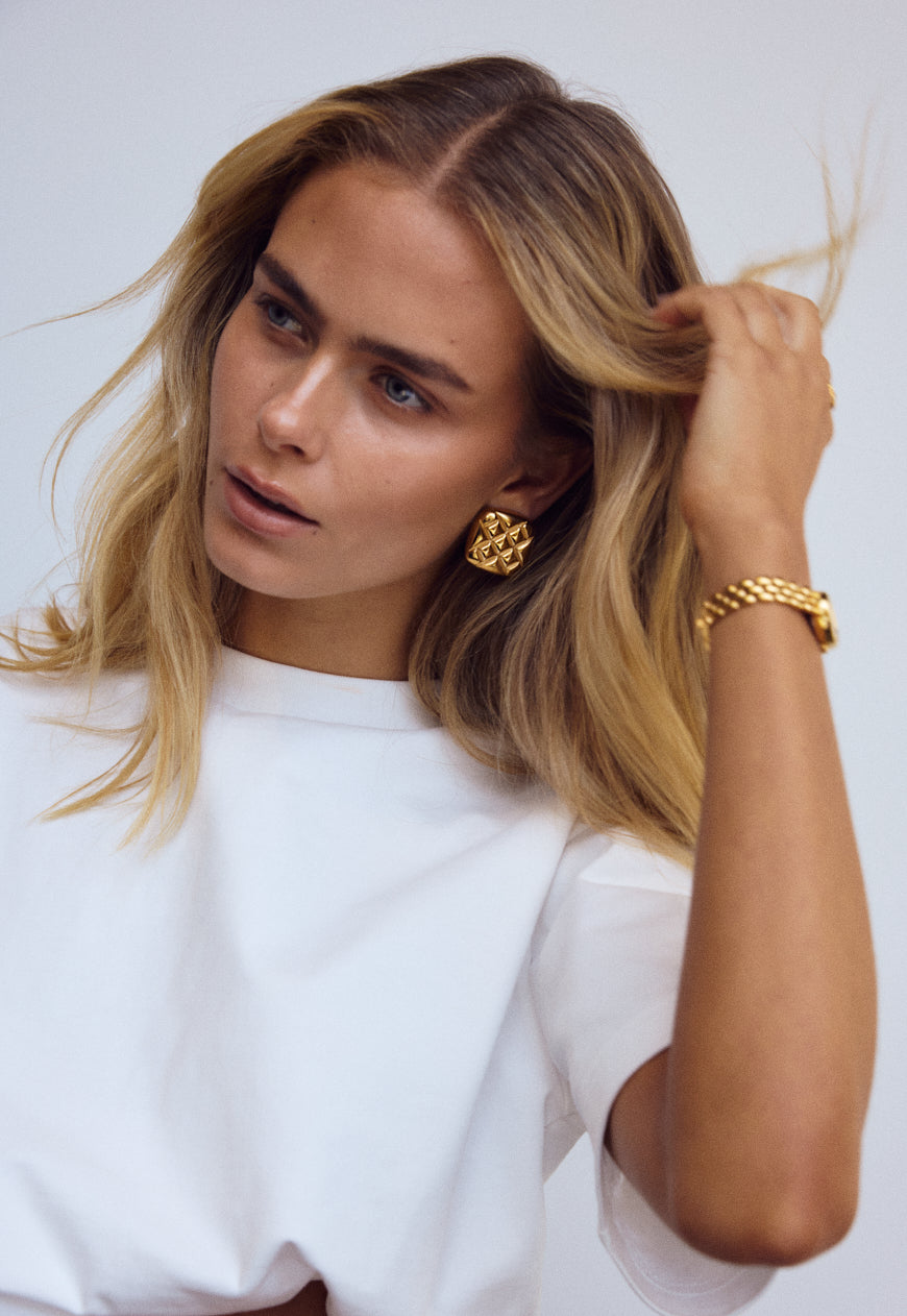 Rich, warm, and softly luminous – our signature gold finish. Designed to make a subtle statement, each piece is plated over high-quality stainless steel for enduring wear.