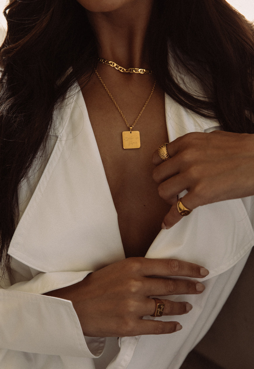 Rich, warm, and softly luminous – our signature gold finish. Designed to make a subtle statement, each piece is plated over high-quality stainless steel for enduring wear.
