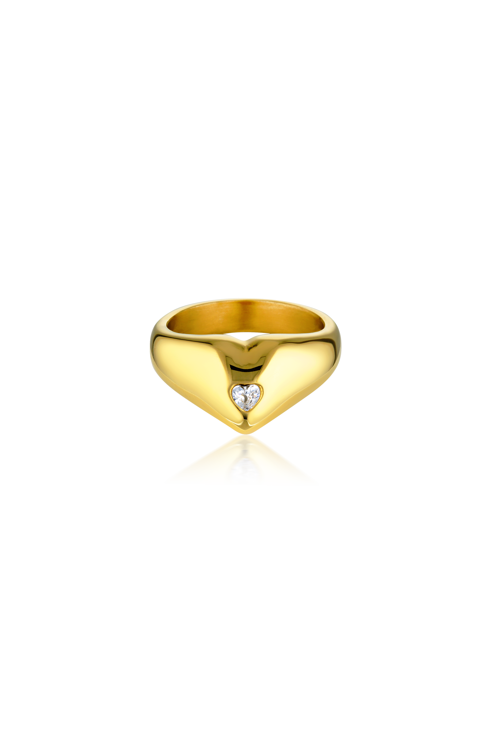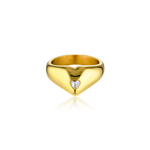 Daydreaming of something a little more delicate? Meet our Pour Toi Heart Ring. It’s crafted from 18k gold-plated stainless steel in a sculptural heart-shape. The gleaming surface is elevated by a clear, cubic zirconia stone that’s fixed in the centre. This romantic style looks equally as enchanting when worn alone or paired with the Romee Heart Earrings.