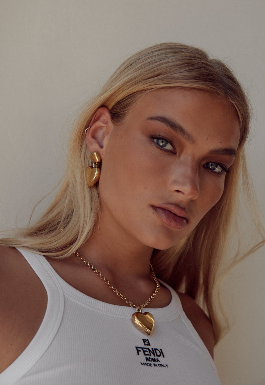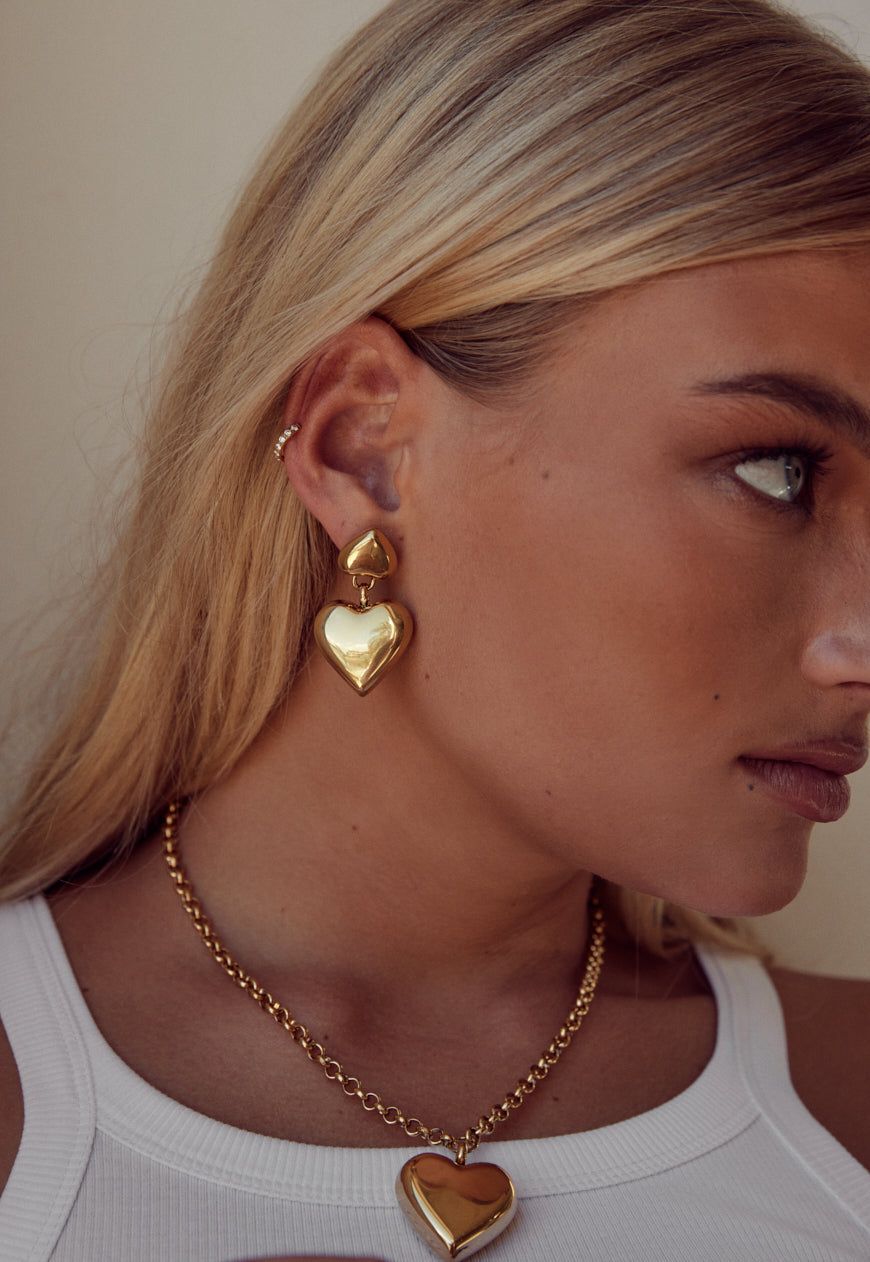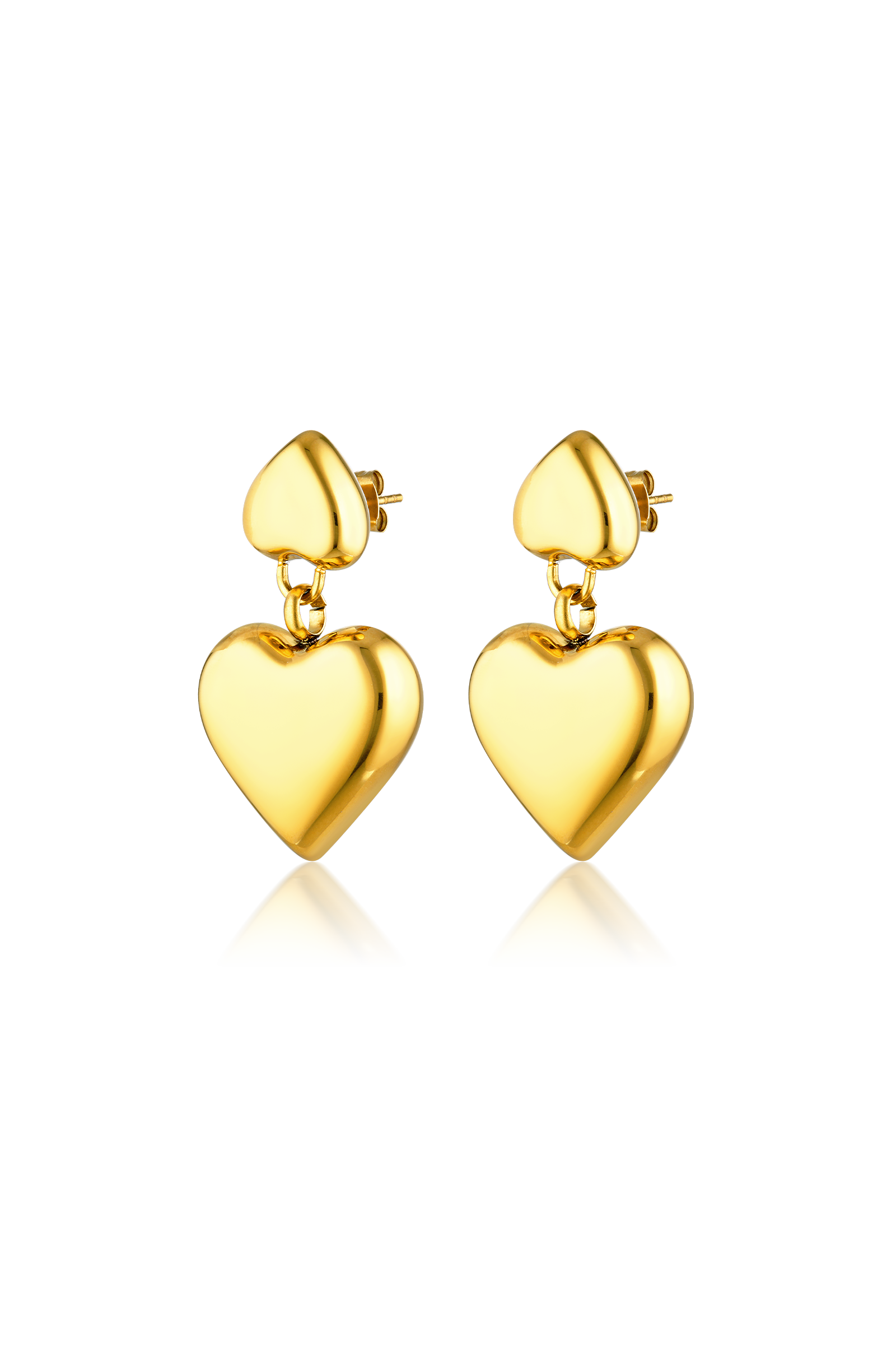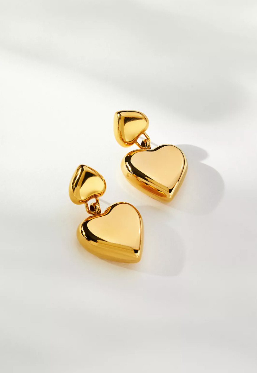 You’ll certainly fall for the Romee Heart Earrings. This 18k gold-plated stainless steel design features two outwardly-facing hearts in complementary sizes. They’re lightweight and secured by a butterfly closure. Need we say more?