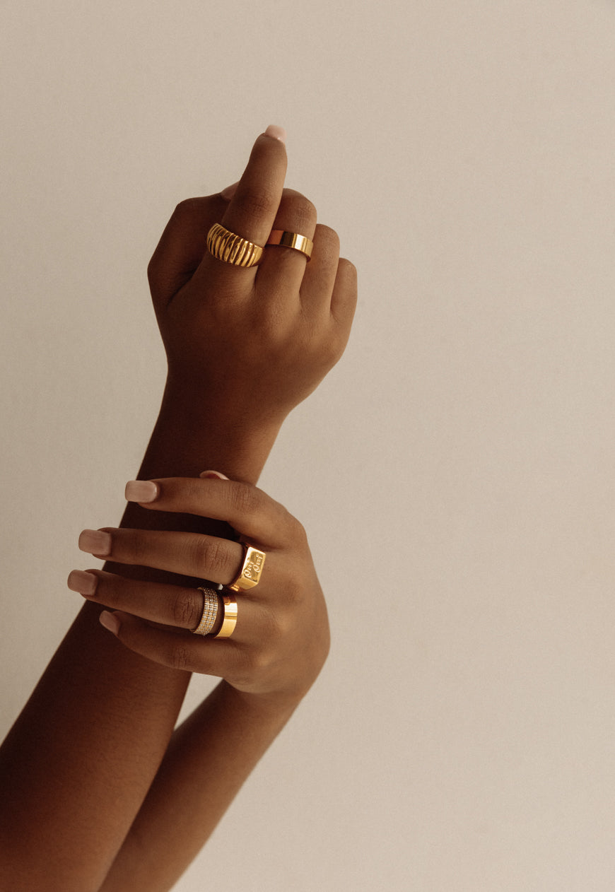 One of the takeaways of our love affair with France is our appreciation for shapes and design. The Solange Ring is a testament to our love of style and structure, boating a dome shape decorated with vertical line engravings.