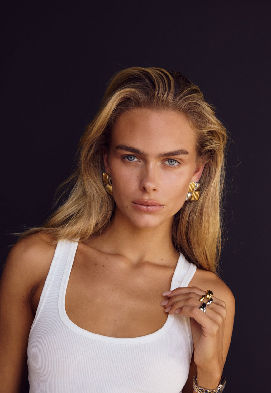 Rich, warm, and softly luminous – our signature gold finish. Designed to make a subtle statement, each piece is plated over high-quality stainless steel for enduring wear.