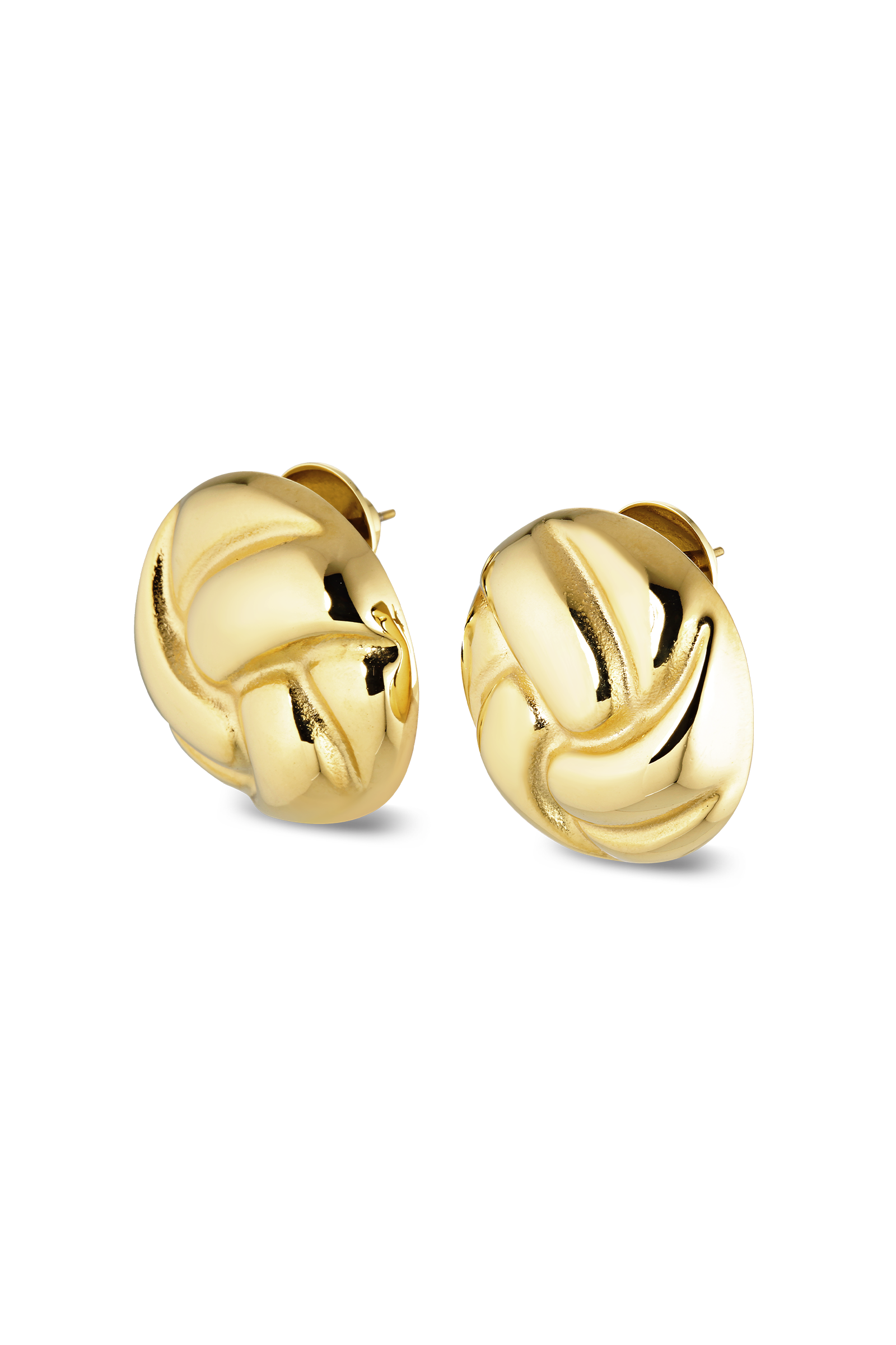 The Valerie Earring exude a vintage artistic feel with a fresh modern approach. Infused with an appearance of overlapping lines in a feminine circular shape completing a nuanced timeless design. A high shine finish brings together this statement style, expertly crafted on 14k Premium gold plated stainless steel.