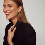 Named after the renowned centre of art in Paris, our Louvre Earrings are destined to be the focal point of your accessories collection. Featuring a distinctive double triangular design crafted from 18k gold-plated stainless steel & Sterling Silver, this two-tone style is set to become a staple in your jewellery rotation.