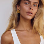 Geometry and artisan design are at the forefront with the Harlowe Earrings, providing a playful nod to art deco inspired trends. Featuring a triangular silhouette and playful engraving, the Harlowe showcase an oversized shape bringing forward a perfect addition to your statement capsule. Crafted on 18k Premium Gold Plated Stainless Steel and secured with our custom earring backings providing an instant lift for an easy to wear style.