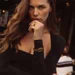 Allow us to introduce you to the Mason Watch, a timepiece that combines form and function. It’s crafted from 18k gold plated stainless steel and has an engineer band with a polished finish. Embrace the moody allure of this style in black and pair it with dark neutrals for a look imbued with classic Parisian flair.