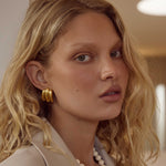 Introducing the Monte Earrings. Featuring a unique ridged design characterised with three parallel curved bands, they add a striking dimensional effect to your earring adornment. Accentuate your everyday ensemble with the Monte, pristinely crafted on 18k Premium Gold Plated Stainless Steel and secured with our custom earring backings providing an instant lift for an easy-to-wear style.