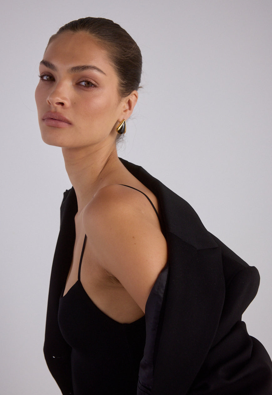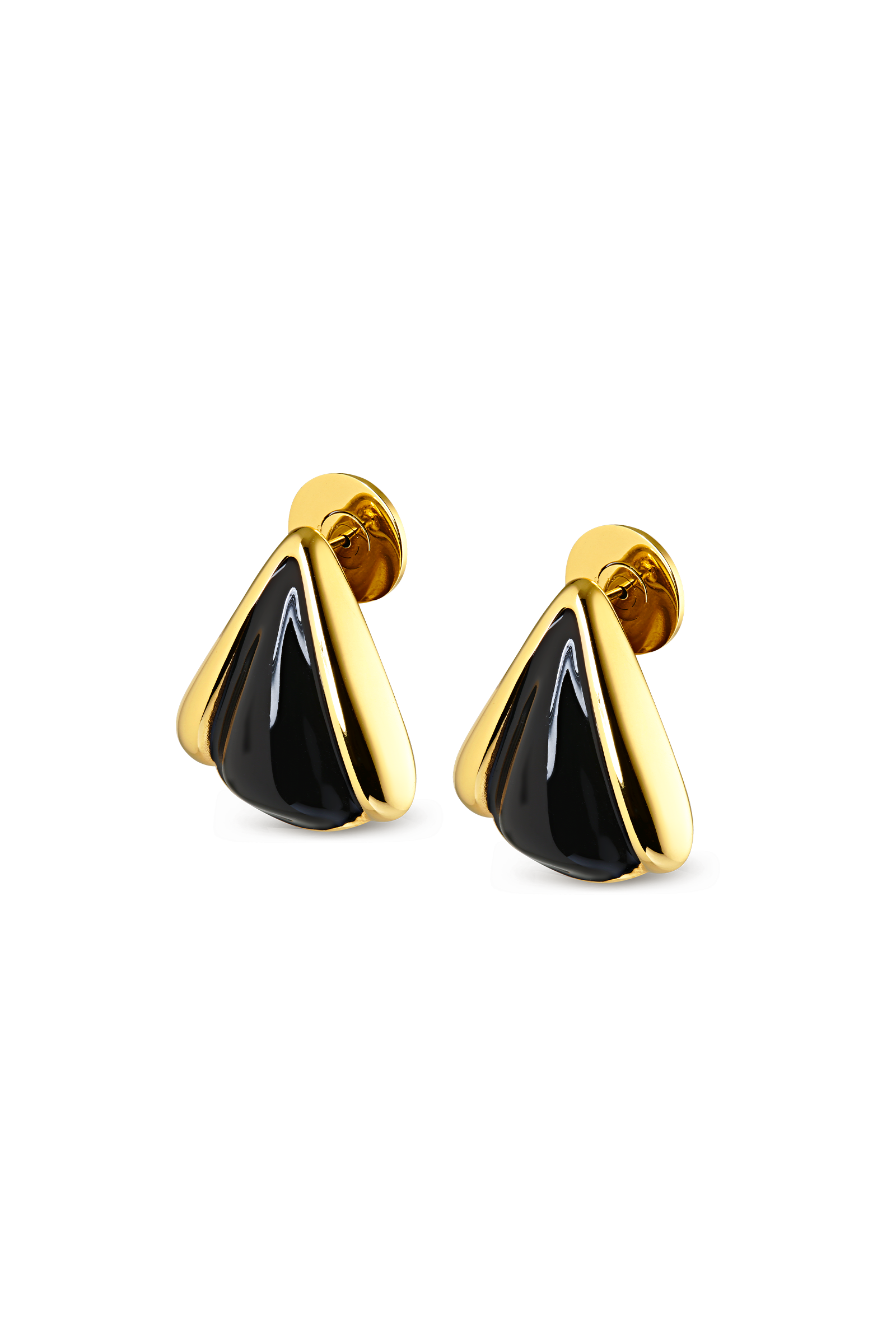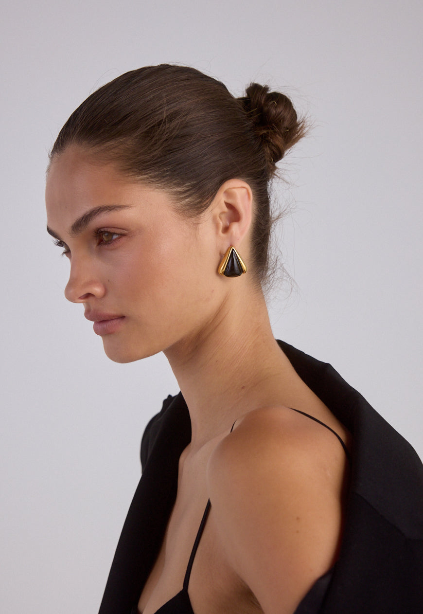 The Aston Earrings are destined to be your new dual-toned statement piece, perfectly combing modern and vintage elements. With a vibrant showcase of mixed toned - the soft triangular design features a bold black stone nestled within a soft gold border, providing a simple yet striking allure.