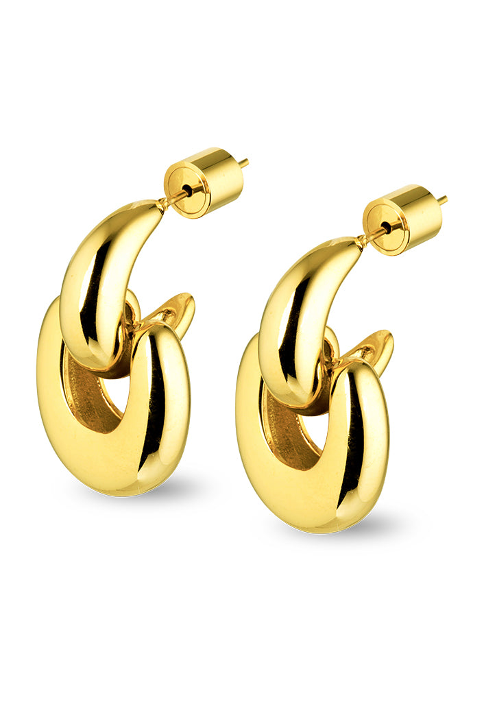 Crafted in 18k Premium Gold Plated Stainless Steel, it is secured with custom earring backings for a secure fit and effortless lift, offering an easy-to-wear staple.
