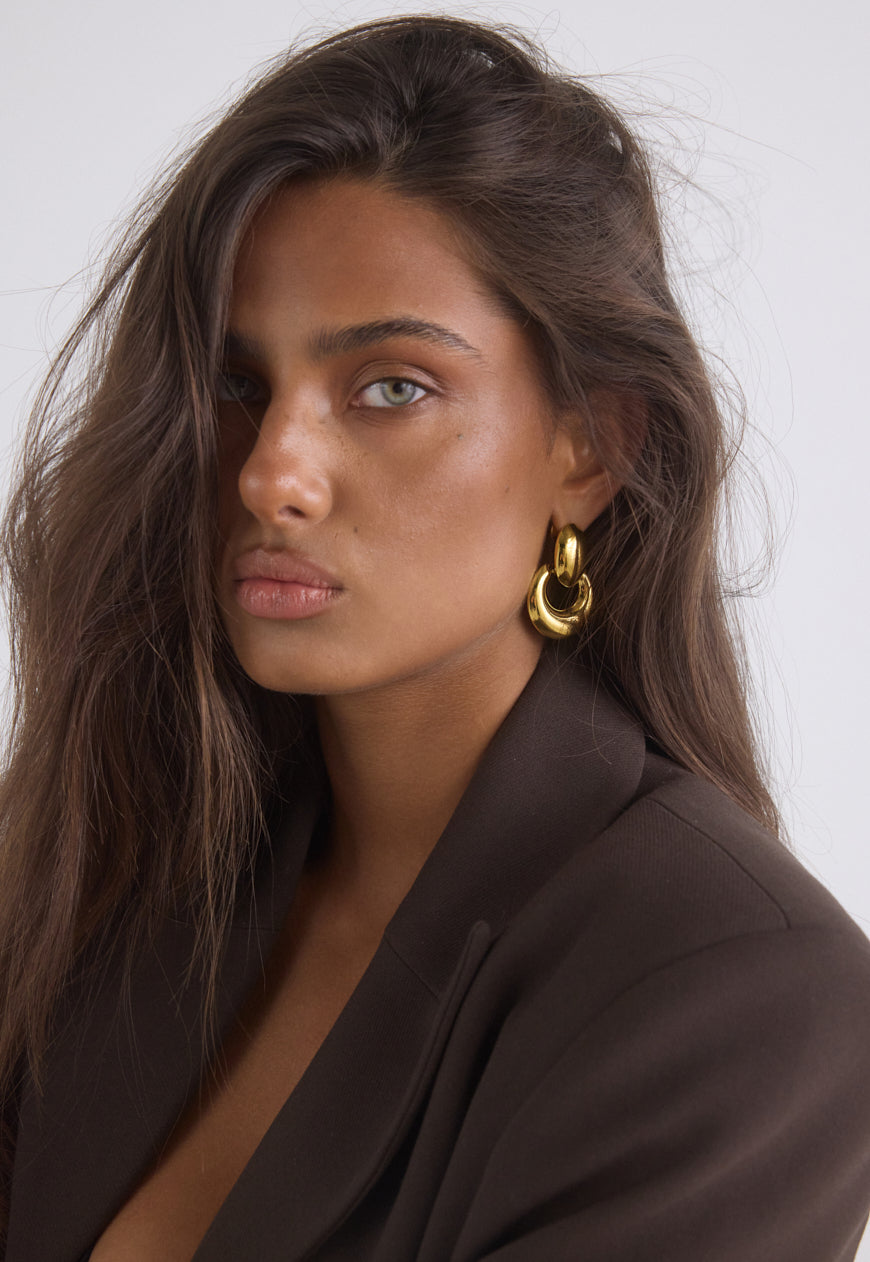Crafted on 18k Premium Gold Plated Stainless Steel and secured with our custom earring backings providing an instant lift for an easy-to-wear style.