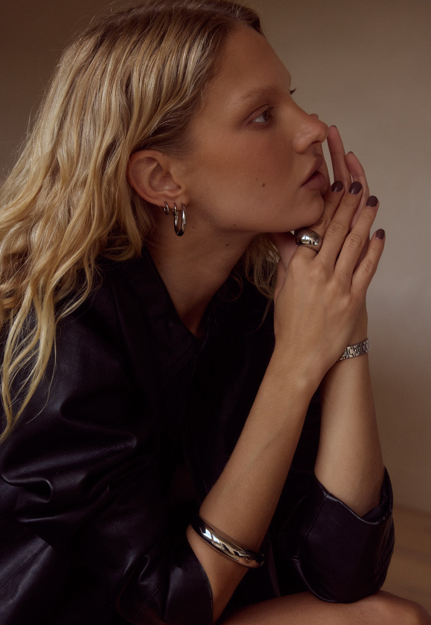Rich, warm, and softly luminous – our signature gold finish. Designed to make a subtle statement, each piece is plated over high-quality stainless steel for enduring wear.