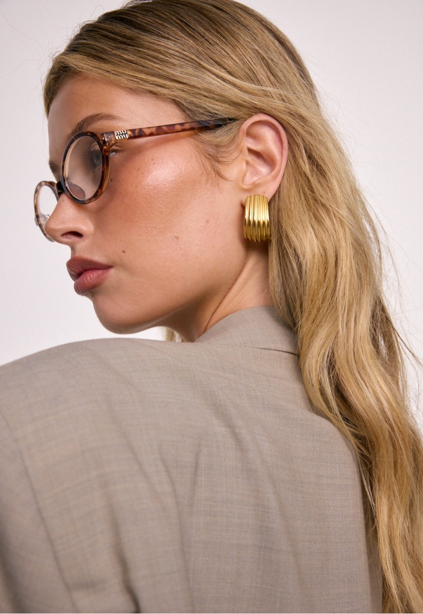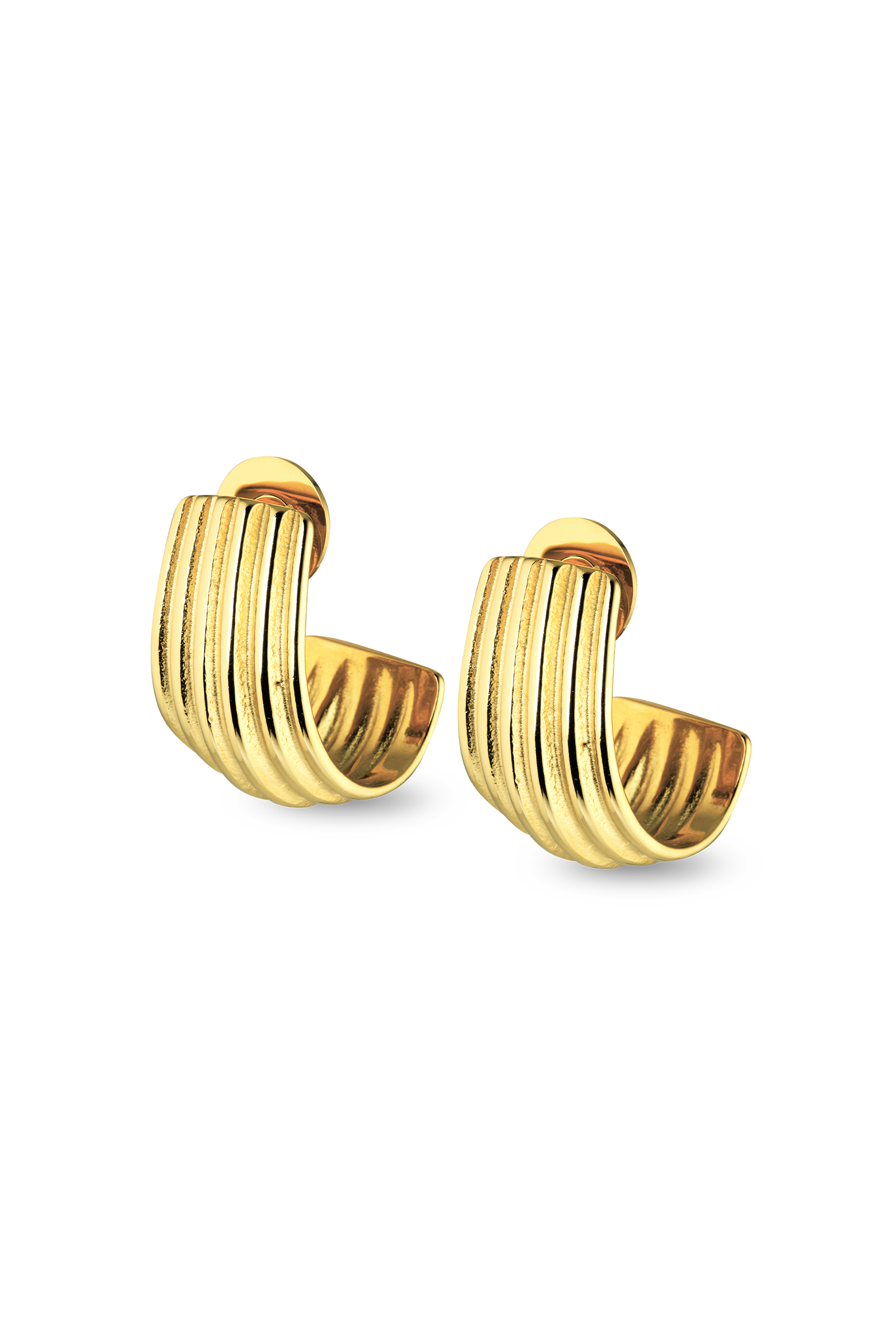 Crafted in 18k Premium Gold Plated Stainless Steel, it is secured with custom earring backings for a secure fit and effortless lift, offering an easy-to-wear statement piece.