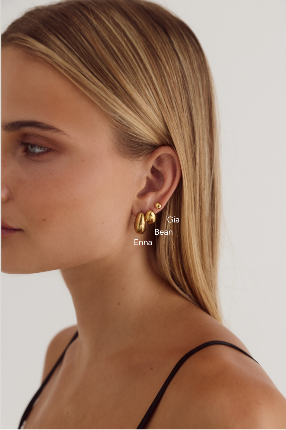 The Enna Earrings feature a unique teardrop shape crafted in premium 18k gold plating. Perfectly sized and lightweight, they’re designed for effortless everyday wear.