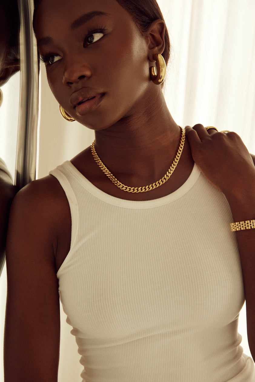 Combining our signature 18k gold plating with polished silver tones, each piece is crafted from premium stainless steel for lasting shine, durability, and a versatile, contemporary finish.
