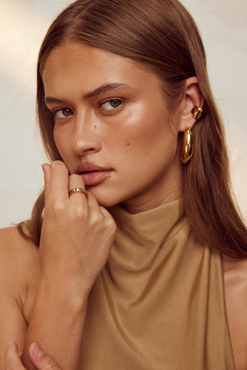What's better than a standard pair of gold hoops? The Kiki Hoop Earrings. A contemporary take on the much-loved hoop design, with a slightly modified shape. Crafted from 18k gold plated stainless steel, these hoops are lightweight despite their solid design.