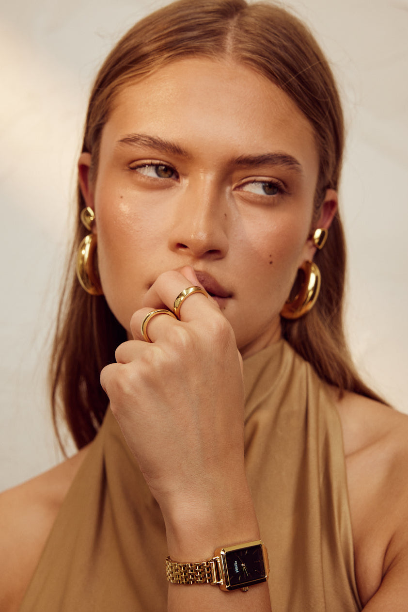Rich, warm, and softly luminous – our signature gold finish. Each piece is plated over high-quality stainless steel for enduring wear.