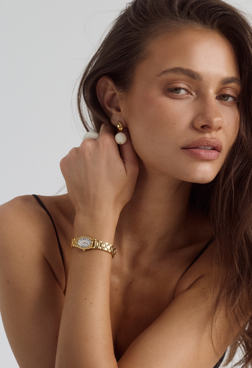 A sculptural take on time – refined in form and finish. The Emmeline Watch, the daintiest silhouette in our timepiece collection, brings sculptural clarity to the everyday. With its sleek profile and softened angles, the polished finish evokes quiet luxury – offering a timeless accent that slips seamlessly into your rotation. Consider it your signature – worn with intention, styled with ease.
