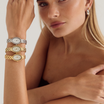 Combining our signature 18k gold plating with polished silver tones, each piece is crafted from premium stainless steel for lasting shine, durability, and a versatile, contemporary finish.