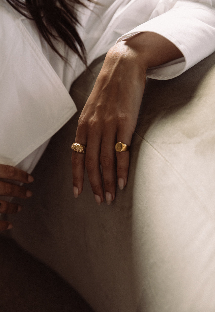 Made for those who love simplicity, the Papillion Ring is a retro inspired dome shape with a hammered finish that includes the words ‘CENDRÉ’ engraved on the inside of the ring. There’s no better way to wear it than layering it with fine jewellery and embellished bands when needing to raise the styling stakes.