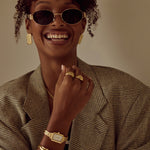 Rich, warm, and softly luminous – our signature gold finish. Designed to make a subtle statement, each piece is plated over high-quality stainless steel for enduring wear.