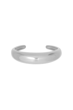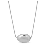 The Sloane Necklace is a rounded, silver polished pendant strung on a delicate chain. A sculptural piece that transitions seamlessly from day to night.